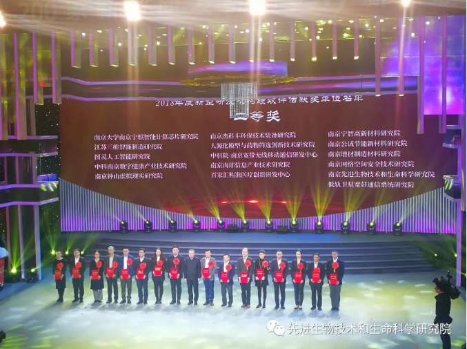 一 獲獎了 在南京市建設(shè)創(chuàng)新名城戰(zhàn)略的背景下,先進(jìn)生物技術(shù)和生命科學(xué)研究院作為新型研發(fā)機構(gòu),在2018年績效考核中榮獲二等獎,在已經(jīng)備案的108家研究機構(gòu)中進(jìn)入前20名。