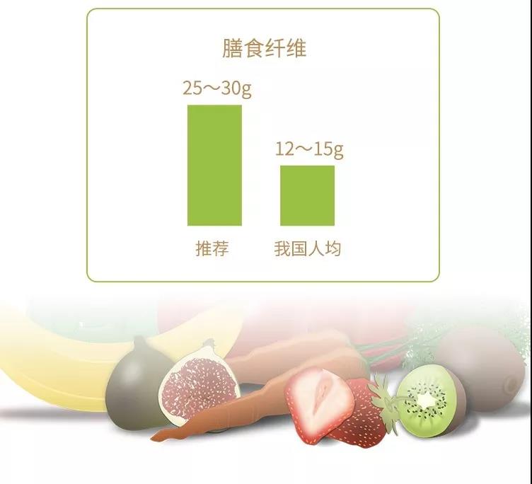 中國營養(yǎng)學(xué)會推薦 每日膳食纖維攝入量為25-30克。調(diào)查顯示,我國居民每日膳食纖維攝入量平均僅為12-15克,攝入量嚴(yán)重不足!